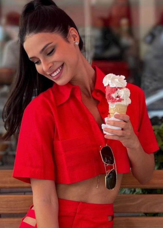 Cropped Linen Shirt Red